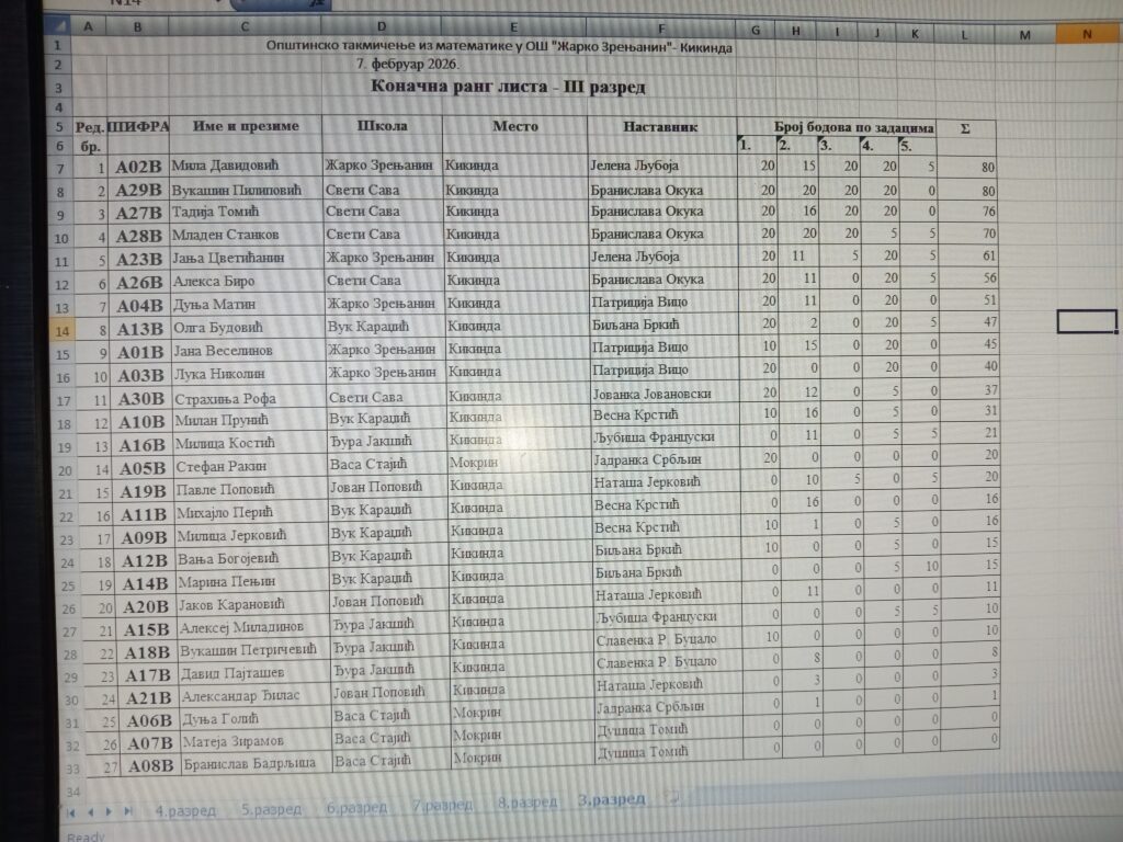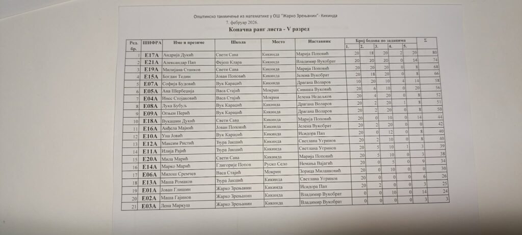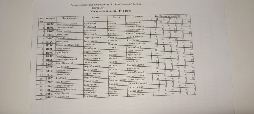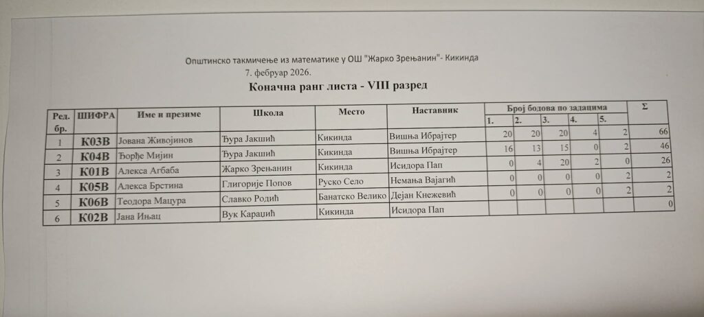 Данас је у нашој школи одржано Општинско такмичење из математике. Из једанаест основних школа смо имали такмичаре. Били смо домаћини за 96 ученика и 41 наставника. Такмичење је организовано за ученике од трећег до осмог разреда, распоређених у седам учионица. Захваљујемо се свима на учешћу!
